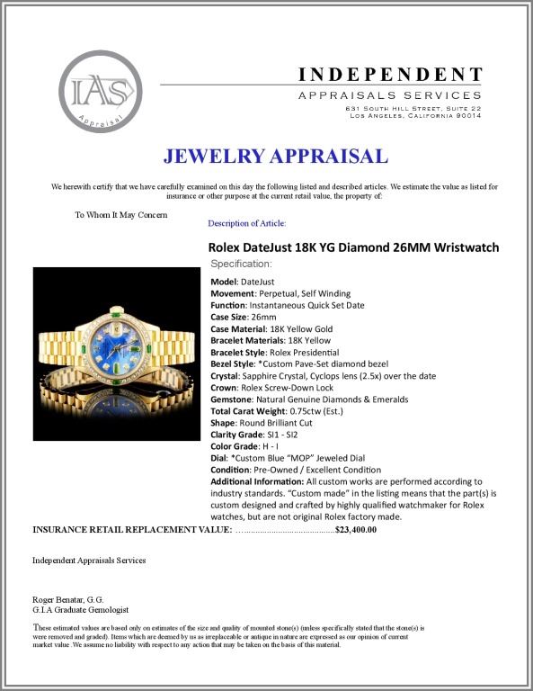 Regarding Appraised Jewelry and Loose Stones - Auctionfarm sends them out to a third party for Retail Replacement Value Appraisals, which are the most common. These types of evaluations are written for insurance needs. This would be the cost to replace the jewelry with an item of equal quality and kind, considered to be the current market price or the replacement value. This type of appraisal is done to protect you in the event of damage or loss of a valuable item. Our appraisals are conducted by independent 3rd Party appraisal firms that utilizes Certified GIA Gemologist. Appraisals should be used for verification of gemstone and/or metal weight, size, and grade only, not actual value. Appraisal value should be considered for insurance purposes only, not actual value, as price varies greatly from retail locations thru out the world. Items should not be purchased with the expectation to resell for appraisal price, or for profit.