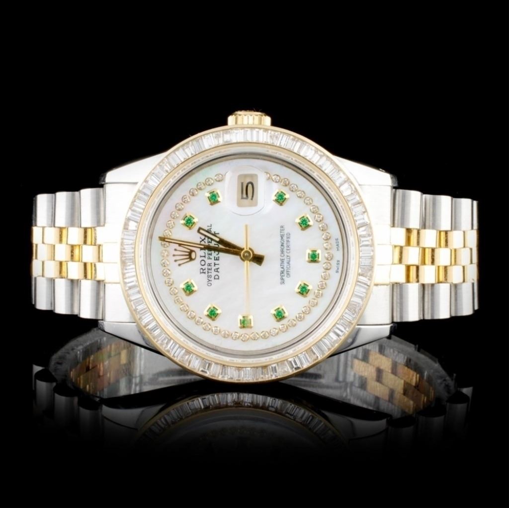 Dial: Custom White MOP Dial with Natural Diamond & Emerald Markers