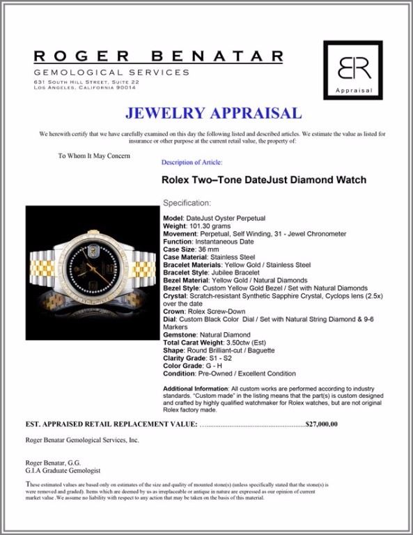 Dial: Custom Black Color Dial / Set with Natural String Diamond & 9 Ð 6 Markers
