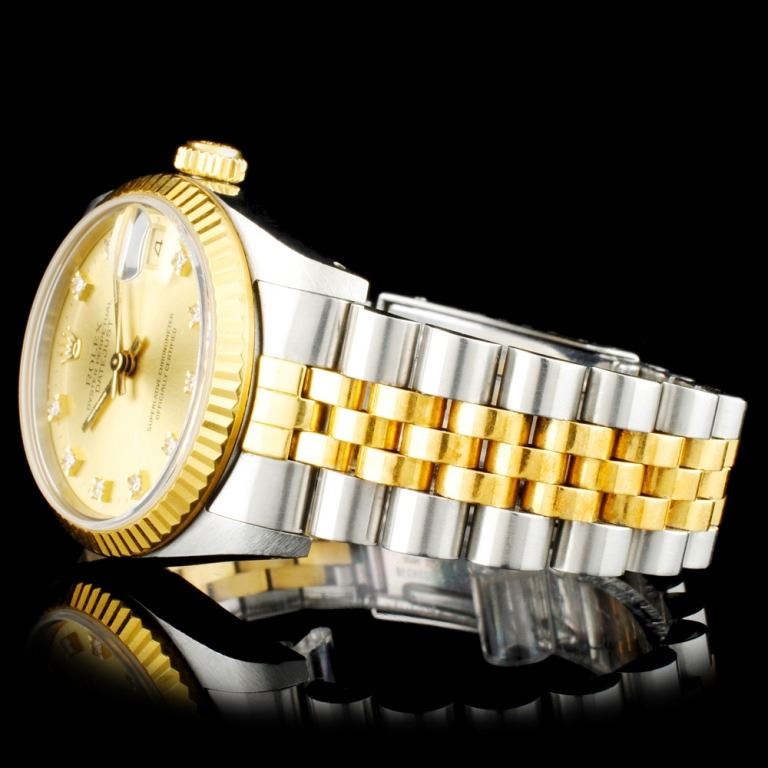 Estimated Retail Replacement Value: $9,800.00Ref: BAS15000Item No.: ARXAA-0005Specification:Documents: Appraisal ReportModel: DateJustMovement: Perpetual, Self WindingFunction: Instantaneous Quick Set DateCase Size: 31mmCase Material: Stainless Steel Bracelet Materials: Stainless Steel & Yellow GoldBracelet Style: Rolex JubileeBezel Material: Yellow GoldBezel Style: Rolex FlutedCrystal: Sapphire Crystal, Cyclops lens (2.5x) over the dateCrown: Rolex Screw-Down LockDial: Custom Champagne Jeweled Dial Condition: Pre-Owned / Excellent Condition*Additional Information: All custom works are performed according to industry standards. ÒCustom madeÓ in the listing means that the part(s) is custom designed and crafted by highly qualified watchmaker for Rolex watches, but are not original Rolex factory made. Great Condition - Shipping notes: We ship 4-10 Business day after the clearance of payment. Tracking numbers are emailed once the package(s) are shipped. Most shipments are sent by FEDEX Priority, UPS Priority, or US PRIORITY MAIL INSURED