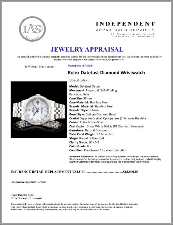 Dial: Custom Snow White Dial & 10R Diamond Numerals