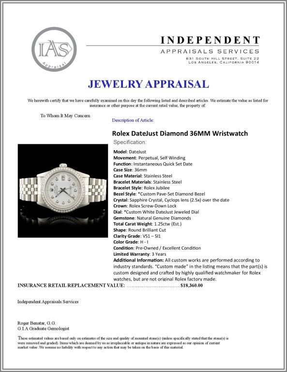 Dial: *Custom White DateJust Jeweled Dial