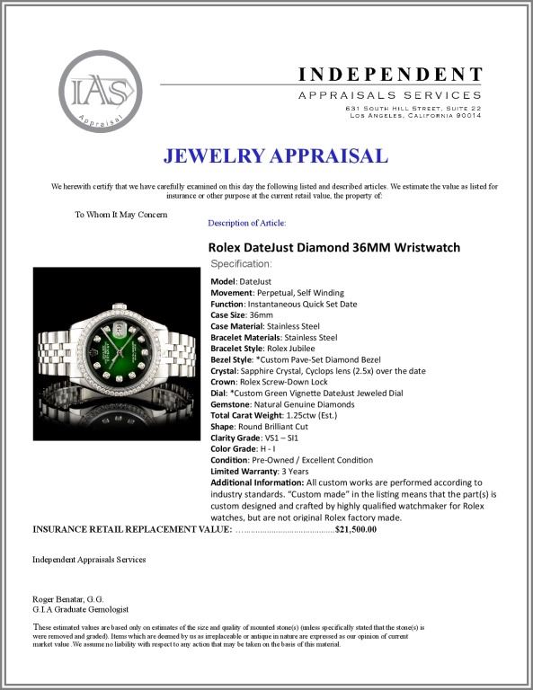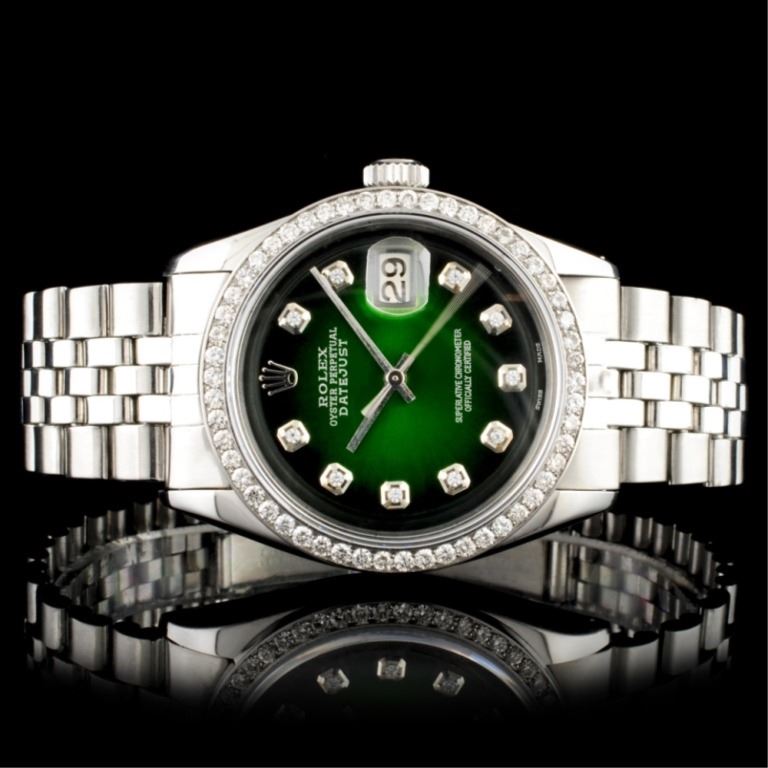 Dial: *Custom Green Vignette DateJust Jeweled Dial
