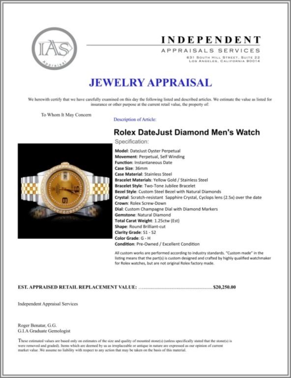 Regarding Appraised Jewelry and Loose Stones - Auctionfarm sends them out to a third party for Retail Replacement Value Appraisals, which are the most common. These types of evaluations are written for insurance needs. This would be the cost to replace the jewelry with an item of equal quality and kind, considered to be the current market price or the replacement value. This type of appraisal is done to protect you in the event of damage or loss of a valuable item. Our appraisals are conducted by independent 3rd Party appraisal firms that utilizes Certified GIA Gemologist. Appraisals should be used for verification of gemstone and/or metal weight, size, and grade only, not actual value. Appraisal value should be considered for insurance purposes only, not actual value, as price varies greatly from retail locations thru out the world. Items should not be purchased with the expectation to resell for appraisal price, or for profit.