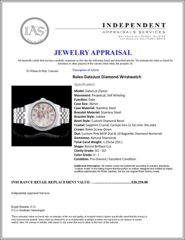 Regarding Appraised Jewelry and Loose Stones - Auctionfarm sends them out to a third party for Retail Replacement Value Appraisals, which are the most common. These types of evaluations are written for insurance needs. This would be the cost to replace the jewelry with an item of equal quality and kind, considered to be the current market price or the replacement value. This type of appraisal is done to protect you in the event of damage or loss of a valuable item. Our appraisals are conducted by independent 3rd Party appraisal firms that utilizes Certified GIA Gemologist. Appraisals should be used for verification of gemstone and/or metal weight, size, and grade only, not actual value. Appraisal value should be considered for insurance purposes only, not actual value, as price varies greatly from retail locations thru out the world. Items should not be purchased with the expectation to resell for appraisal price, or for profit.