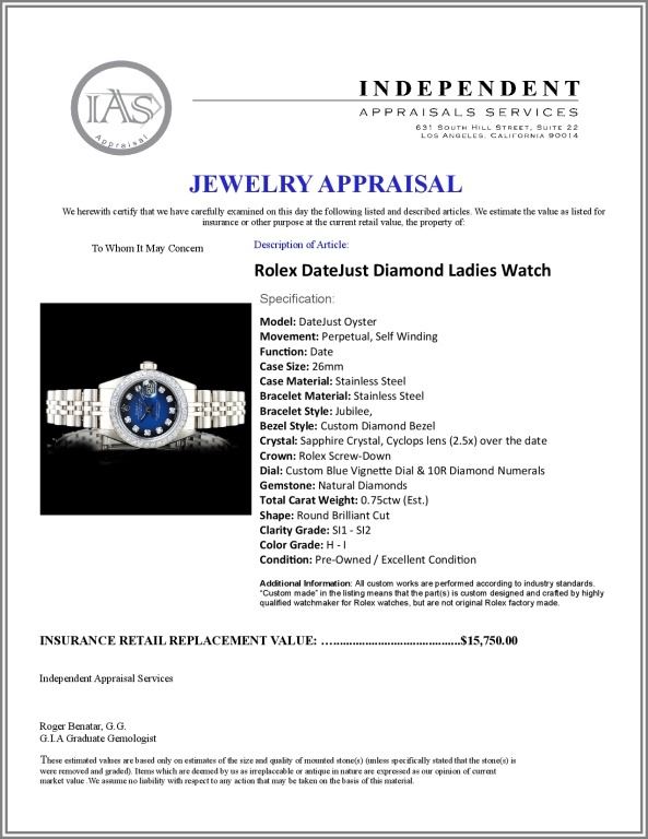 Dial: Custom Blue Vignette Dial & 10R Diamond Numerals