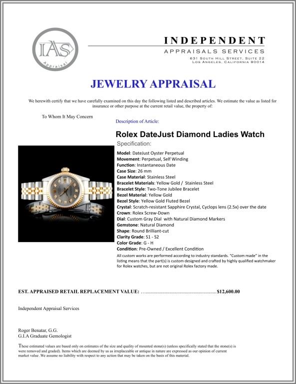Dial: Custom Gray Dial with Natural Diamond Markers