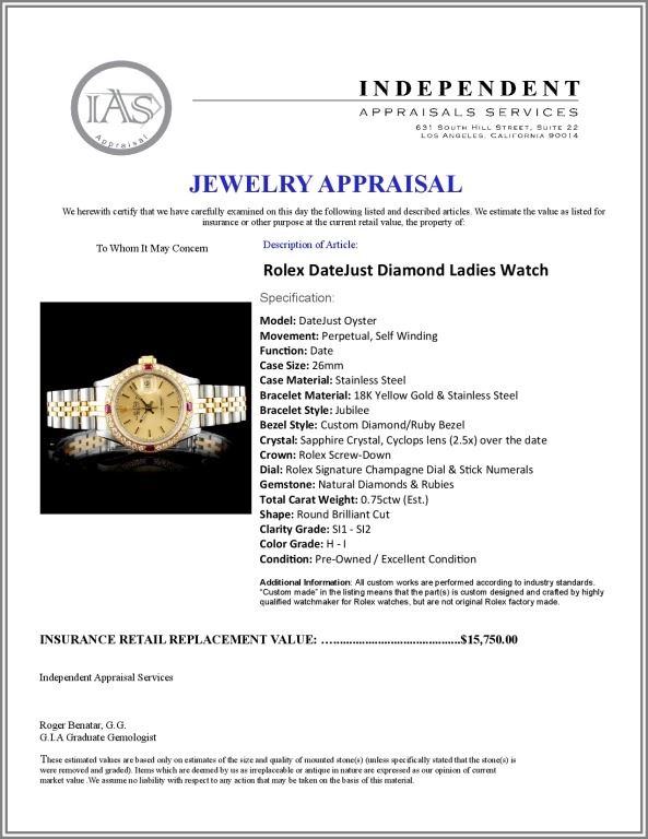 Regarding Appraised Jewelry and Loose Stones - Auctionfarm sends them out to a third party for Retail Replacement Value Appraisals, which are the most common. These types of evaluations are written for insurance needs. This would be the cost to replace the jewelry with an item of equal quality and kind, considered to be the current market price or the replacement value. This type of appraisal is done to protect you in the event of damage or loss of a valuable item. Our appraisals are conducted by independent 3rd Party appraisal firms that utilizes Certified GIA Gemologist. Appraisals should be used for verification of gemstone and/or metal weight, size, and grade only, not actual value. Appraisal value should be considered for insurance purposes only, not actual value, as price varies greatly from retail locations thru out the world. Items should not be purchased with the expectation to resell for appraisal price, or for profit.