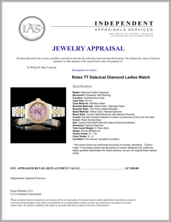 Regarding Appraised Jewelry and Loose Stones - Auctionfarm sends them out to a third party for Retail Replacement Value Appraisals, which are the most common. These types of evaluations are written for insurance needs. This would be the cost to replace the jewelry with an item of equal quality and kind, considered to be the current market price or the replacement value. This type of appraisal is done to protect you in the event of damage or loss of a valuable item. Our appraisals are conducted by independent 3rd Party appraisal firms that utilizes Certified GIA Gemologist. Appraisals should be used for verification of gemstone and/or metal weight, size, and grade only, not actual value. Appraisal value should be considered for insurance purposes only, not actual value, as price varies greatly from retail locations thru out the world. Items should not be purchased with the expectation to resell for appraisal price, or for profit.