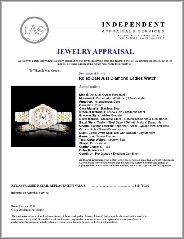 Regarding Appraised Jewelry and Loose Stones - Auctionfarm sends them out to a third party for Retail Replacement Value Appraisals, which are the most common. These types of evaluations are written for insurance needs. This would be the cost to replace the jewelry with an item of equal quality and kind, considered to be the current market price or the replacement value. This type of appraisal is done to protect you in the event of damage or loss of a valuable item. Our appraisals are conducted by independent 3rd Party appraisal firms that utilizes Certified GIA Gemologist. Appraisals should be used for verification of gemstone and/or metal weight, size, and grade only, not actual value. Appraisal value should be considered for insurance purposes only, not actual value, as price varies greatly from retail locations thru out the world. Items should not be purchased with the expectation to resell for appraisal price, or for profit.