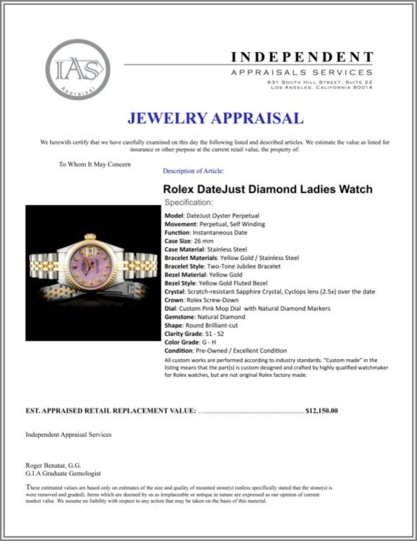 Regarding Appraised Jewelry and Loose Stones - Auctionfarm sends them out to a third party for Retail Replacement Value Appraisals, which are the most common. These types of evaluations are written for insurance needs. This would be the cost to replace the jewelry with an item of equal quality and kind, considered to be the current market price or the replacement value. This type of appraisal is done to protect you in the event of damage or loss of a valuable item. Our appraisals are conducted by independent 3rd Party appraisal firms that utilizes Certified GIA Gemologist. Appraisals should be used for verification of gemstone and/or metal weight, size, and grade only, not actual value. Appraisal value should be considered for insurance purposes only, not actual value, as price varies greatly from retail locations thru out the world. Items should not be purchased with the expectation to resell for appraisal price, or for profit.