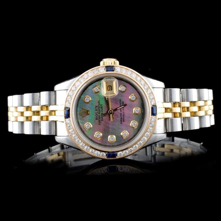 Bezel Style: Custom 18K Yellow Gold / Set with a Custom Diamond & Sapphires