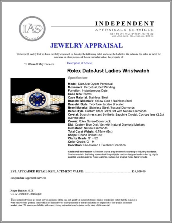 Regarding Appraised Jewelry and Loose Stones - Auctionfarm sends them out to a third party for Retail Replacement Value Appraisals, which are the most common. These types of evaluations are written for insurance needs. This would be the cost to replace the jewelry with an item of equal quality and kind, considered to be the current market price or the replacement value. This type of appraisal is done to protect you in the event of damage or loss of a valuable item. Our appraisals are conducted by independent 3rd Party appraisal firms that utilizes Certified GIA Gemologist. Appraisals should be used for verification of gemstone and/or metal weight, size, and grade only, not actual value. Appraisal value should be considered for insurance purposes only, not actual value, as price varies greatly from retail locations thru out the world. Items should not be purchased with the expectation to resell for appraisal price, or for profit.