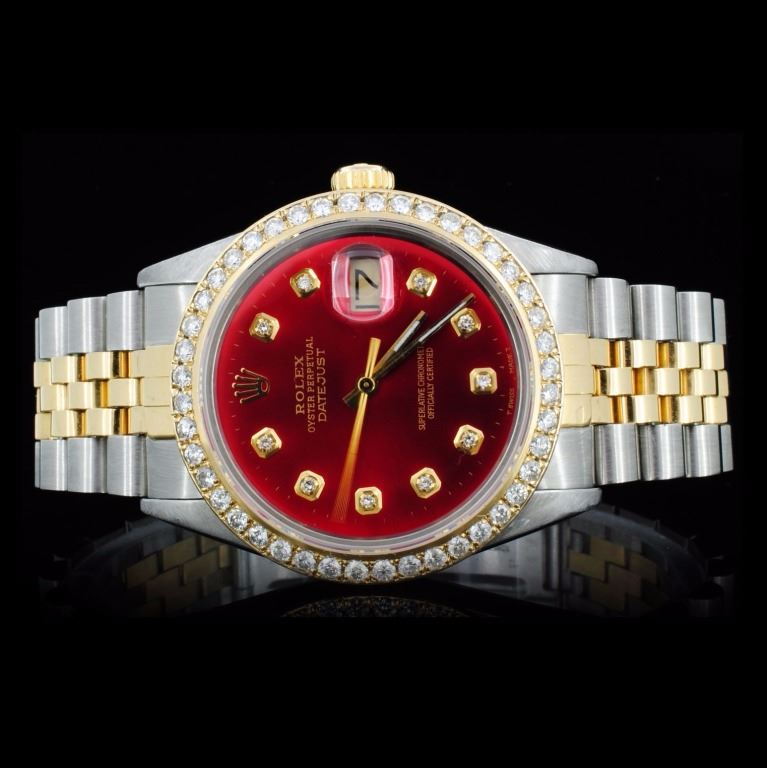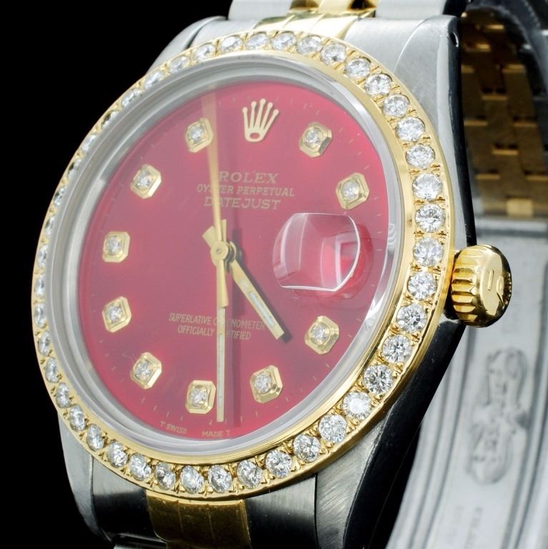 Dial: Red mother of pearl dial / Set with custom diamond markers