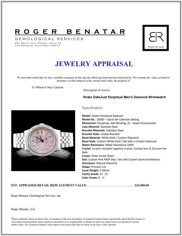 Dial: Custom Pink MOP Dial / Set with Custom Diamond Markers