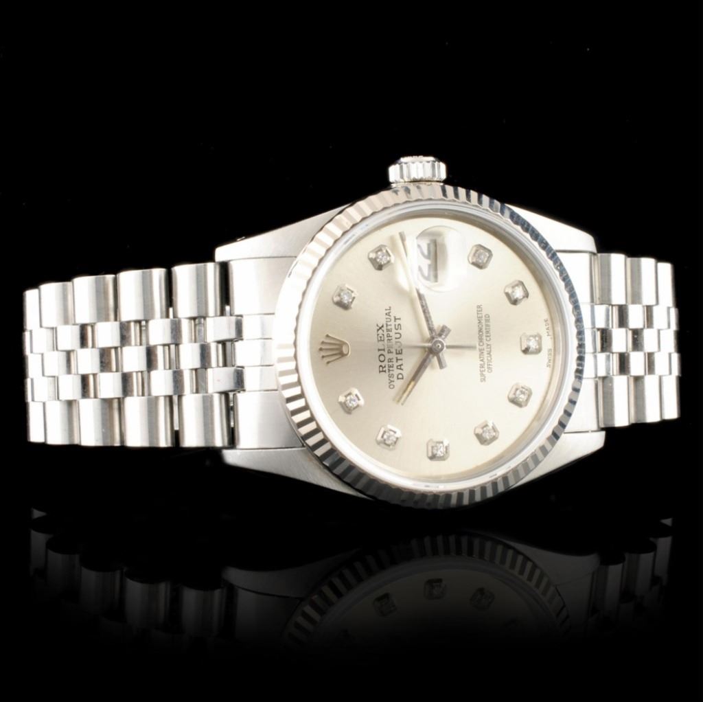 Estimated Retail Replacement Value: $11,470.00Ref: BAS14000Item No.: ARXAA-0025Specification:Documents: Appraisal ReportModel: DateJustMovement: Perpetual, Self WindingFunction: Instantaneous Quick Set DateCase Size: 36mmCase Material: Stainless Steel     Bracelet Materials: Stainless Steel     Bracelet Style: Rolex JubileeBezel Material: White GoldBezel Style: Rolex FlutedCrystal: Acrylic Crystal, Cyclops lens (2.5x) over the dateCrown: Rolex Screw-Down LockDial: Custom SlateJeweled Dial         Condition: Pre-Owned / Excellent Condition*Additional Information: All custom works are performed according to industry standards. ÒCustom madeÓ in the listing means that the part(s) is custom designed and crafted by highly qualified watchmaker for Rolex watches, but are not original Rolex factory made. Great Condition - Shipping notes: We ship 4-10 Business day after the clearance of payment. Tracking numbers are emailed once the package(s) are shipped. Most shipments are sent by FEDEX Priority, UPS Priority, or US PRIORITY MAIL INSURED