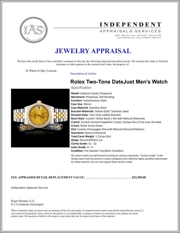 Dial: Custom Champagne Dial with Natural Diamond Markers