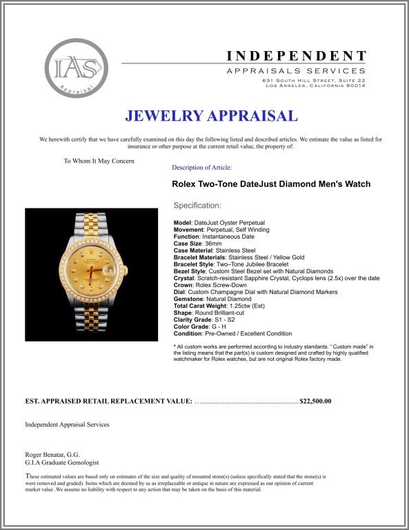 Dial: Custom Champagne Dial with Natural Diamond Markers