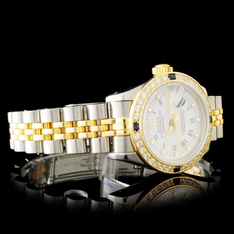 Bezel Material: Yellow Gold & Diamonds & Baguette Sapphire