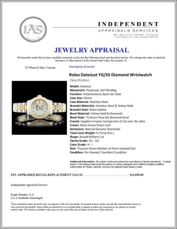 Dial: *Custom Green Mother-of-Pearl Jeweled Dial