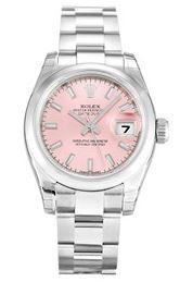 Model: 179160-PISO - CASE = [Material:Stainless Steel], [Case Diameter:26], [Bezel:Fixed Domed], [Water Resistant:100 Meters - 330 Feet], [Crystal:Sapphire],; DIAL = [Color:Pink Stick],; MOVEMENT = [Type:31 Jewels Automatic Self Winding],; BAND = [Clasp:Deployant], [Type:Stainless Steel Oyster], (Usually ships in 1 to 2 weeks.)