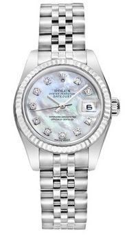 Model: 179174-WHMOPDJ - CASE = [Material:Stainless Steel], [Case Diameter:26], [Bezel:Fixed Fluted], [Water Resistant:100 Meters - 330 Feet], [Crystal:Sapphire],; DIAL = [Color:White Mother of Pearl Diamond],; MOVEMENT = [Type:31 Jewels Automatic Self Winding],; BAND = [Clasp:Hidden Deployant], [Type:Stainless steel Jubilee], (Usually ships in 1 to 2 weeks.)