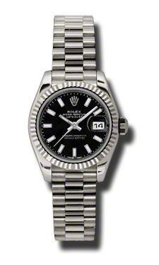 Model: 179179-BKSJ - CASE = [Material:18kt White Gold], [Case Diameter:26], [Bezel:Fluted], [Case Back:Solid], [Water Resistant:100 Meters - 330 Feet], [Crystal:Sapphire],; DIAL = [Color:Black Index],; MOVEMENT = [Type:Automatic Self Winding], [Crown:Screw Down],; BAND = [Clasp:Concealed Crown], [Type:18kt White Gold Jubilee], (Usually ships in 1 to 2 weeks.)