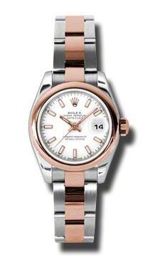 Model: 179161-WHSO - CASE = [Material:Stainless Steel], [Case Diameter:26], [Bezel:Fluted 18kt White Gold], [Case Back:Solid], [Water Resistant:100 Meters - 330 Feet], [Crystal:Sapphire],; DIAL = [Color:White Index],; MOVEMENT = [Type:Automatic Self Winding], [Crown:Screw Down],; BAND = [Clasp:Oysterlock Clasp], [Type:Stainless Steel and 18K Pink-Gold Oyster], (Usually ships in 1 to 2 weeks.)