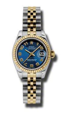 Model: 179173-BLCAJ - CASE = [Material:Stainless Steel], [Case Diameter:26], [Bezel:Fluted 18kt Yellow Gold], [Case Back:Solid], [Water Resistant:100 Meters - 330 Feet], [Crystal:Scratch Resistant Sapphire],; DIAL = [Color:Blue Concentric Circle Arabic],; MOVEMENT = [Type:Automatic Self Winding], [Crown:Screw Down],; BAND = [Clasp:Concealed Crown], [Type:18kt Yellow Gold and Stainless Steel Jubilee], (Usually ships in 1 to 2 weeks.)