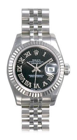 Model: 179174-BKSRJ - CASE = [Material:Stainless Steel], [Case Diameter:26], [Bezel:Fixed Fluted], [Water Resistant:100 Meters - 330 Feet], [Crystal:Scratch Resistant Sapphire],; DIAL = [Color:Black Sunburst Roman Numeral],; MOVEMENT = [Type:31 Jewels Automatic Self Winding],; BAND = [Clasp:Hidden Deployant], [Type:Stainless steel Jubilee], (Usually ships in 1 to 2 weeks.)