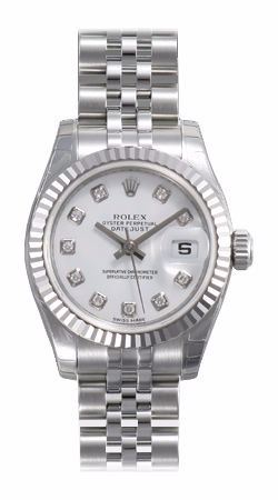 Model: 179174-WHDJ - CASE = [Material:Stainless Steel], [Case Diameter:26], [Bezel:Fixed Fluted], [Water Resistant:100 Meters - 330 Feet], [Crystal:Sapphire],; DIAL = [Color:White Diamond],; MOVEMENT = [Type:31 Jewels Automatic Self Winding],; BAND = [Clasp:Hidden Deployant], [Type:Stainless steel Jubilee], (Usually ships in 1 to 2 weeks.)
