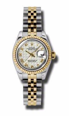 Model: 179173-IVRJ - CASE = [Material:Stainless Steel], [Case Diameter:26], [Bezel:Fluted 18kt Yellow Gold], [Case Back:Solid], [Water Resistant:100 Meters - 330 Feet], [Crystal:Scratch Resistant Sapphire],; DIAL = [Color:Ivory Pyramid Roman Numeral],; MOVEMENT = [Type:Automatic Self Winding], [Crown:Screw Down],; BAND = [Clasp:Concealed Crown], [Type:18kt Yellow Gold and Stainless Steel Jubilee], (Usually ships in 1 to 2 weeks.)