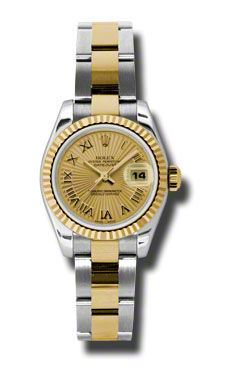 Model: 179173-CHSRO - Case,; MATERIALSTAINLESS STEEL = [Case Diameter26], [BezelFluted], [Case BackSolid], [Water Resistant100 Meters - 330 Feet], [CrystalSapphire], Dial,; COLORCHAMPAGNE SUNBURST ROMAN NUMERAL = Movement,; TYPEAUTOMATIC SELF WINDING = [CrownScrew Down], Band,; CLASPOYSTERLOCK CLASP = [Type18kt Yellow Gold and Stainless Steel], (Usually ships in 1 to 2 weeks.)