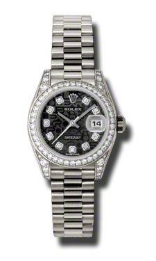 Model: 179159-BKJDPR - Case,; MATERIAL18K WHITE GOLD DIAMOND = [Case Diameter26], [Bezel18k White Gold Diamond], [Case BackSolid], [Water Resistant100 Meters - 330 Feet], [CrystalSapphire], Dial,; COLORBLACK JUBILEE DIAMOND = Movement,; TYPEAUTOMATIC SELF WINDING = [CrownScrew Down], Band,; CLASPCONCEALED CROWN = [Type18k White Gold President], (Usually ships in 1 to 2 weeks.)