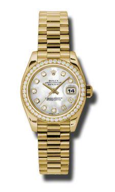 Model: 179138-MOPDP - CASE = [Material:18kt Yellow Gold], [Case Diameter:26], [Bezel:Diamond], [Water Resistant:100 Meters - 330 Feet], [Crystal:Sapphire], DIAL = [Color:Mother of Pearl Diamond], MOVEMENT = [Type:Automatic Self Winding], [Crown:Screw Down], BAND = [Clasp:Concealed Crown], [Type:18kt Yellow Gold], (Usually ships in 1 to 2 weeks.)
