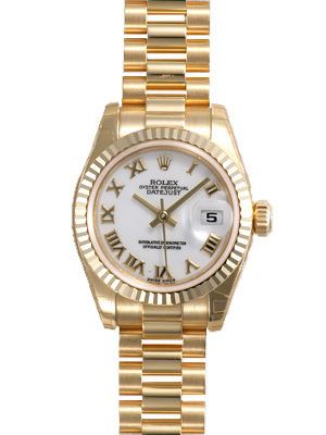 Model: 179178-WHRO - CASE = [Material:18kt Yellow Gold], [Case Diameter:26], [Bezel:Fluted 18kt Yellow Gold], [Water Resistant:100 Meters - 330 Feet], [Crystal:Sapphire], DIAL = [Color:White Roman Numerals], MOVEMENT = [Type:Automatic Self Winding], BAND = [Type:18kt Yellow Gold], (Usually ships in 1 to 2 weeks.)