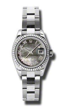 Model: 179174-BKMOPRO - CASE = [Material:Stainless Steel], [Case Diameter:26], [Bezel:Fluted 18kt White Gold], [Case Back:Solid], [Water Resistant:100 Meters - 330 Feet], [Crystal:Sapphire], DIAL = [Color:Black Mother of Pearl Roman Numeral], MOVEMENT = [Type:Automatic Self Winding], [Crown:Screw Down], BAND = [Clasp:Oysterlock Clasp], [Type:Stainless Steel Oyster], (Usually ships in 1 to 2 weeks.)