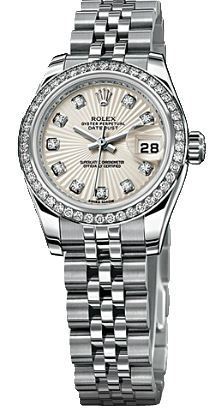 Model: 179384-IVSDJ - CASE = [Material:Stainless Steel], [Case Diameter:26], [Bezel:Fixed 18kt White Gold], [Case Back:Solid], [Water Resistant:100 Meters - 330 Feet], [Crystal:Scratch Resistant Sapphire], DIAL = [Color:Ivory Sunburst Diamond], MOVEMENT = [Type:Automatic Self Winding], [Crown:Screw Down], BAND = [Clasp:Concealed Crown], [Type:Stainless steel Jubilee], (Usually ships in 1 to 2 weeks.)