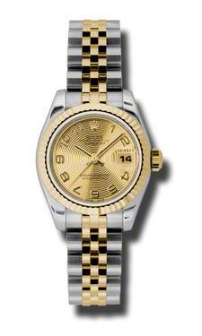 Model: 179173-CHCAJ - CASE = [Material:Stainless Steel], [Case Diameter:26], [Bezel:Fixed], [Case Back:Solid], [Water Resistant:100 Meters - 330 Feet], [Crystal:Scratch Resistant Sapphire], DIAL = [Color:Champagne Concentric Arabic], MOVEMENT = [Type:Automatic Self Winding], [Crown:Screw Down], BAND = [Clasp:Concealed Crown], [Type:18kt Yellow Gold and Stainless Steel Jubilee], (Usually ships in 1 to 2 weeks.)