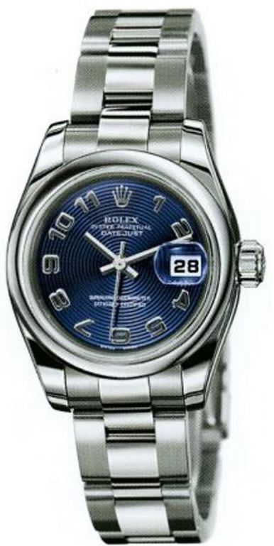 Model: 179160-BLCAO - CASE = [Material:Stainless Steel], [Case Diameter:26], [Bezel:Fixed domed], [Water Resistant:100 Meters - 330 Feet], [Crystal:Sapphire], DIAL = [Color:Blue Concentric Arabic], MOVEMENT = [Type:31 Jewels Automatic Self Winding], BAND = [Type:Stainless Steel Oyster],  (Usually ships in 1 to 2 weeks.)