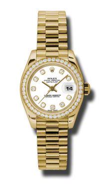 Model: 179138-WHDP - CASE = [Material:18kt Yellow Gold], [Case Diameter:26], [Bezel:Diamond], [Case Back:Solid], [Water Resistant:100 Meters - 330 Feet], [Crystal:Sapphire], DIAL = [Color:White Diamond], MOVEMENT = [Type:Automatic Self Winding], [Crown:Screw Down], BAND = [Clasp:Concealed Crown], [Type:18kt Yellow Gold], (Usually ships in 1 to 2 weeks.)