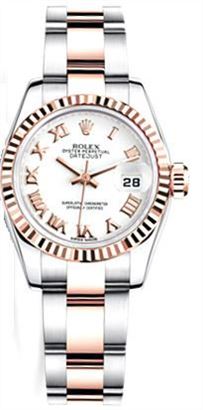 Model: 179171-WHRJ - CASE = [Material:Stainless Steel], [Case Diameter:26], [Bezel:Fluted 18kt Rose Gold], [Case Back:Solid], [Water Resistant:100 Meters - 330 Feet], [Crystal:Scratch Resistant Sapphire], DIAL = [Color:White Roman Numerals], MOVEMENT = [Type:Automatic Self Winding], [Crown:Screw Down], BAND = [Clasp:Concealed Crown], [Type:Stainless Steel and 18kt Rose Gold], (Usually ships in 1 to 2 weeks.)
