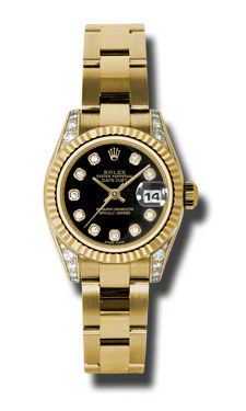 Model: 179238-BKDO - CASE = [Material:18kt Yellow Gold Set With 24 Diamonds], [Case Diameter:26], [Bezel:Fluted 18kt Yellow Gold], [Case Back:Solid], [Water Resistant:100 Meters - 330 Feet], [Crystal:Sapphire], DIAL = [Color:Black Diamond], MOVEMENT = [Type:Automatic Self Winding], [Crown:Screw Down], BAND = [Clasp:Oysterlock Clasp], [Type:18kt Yellow Gold], (Usually ships in 1 to 2 weeks.)