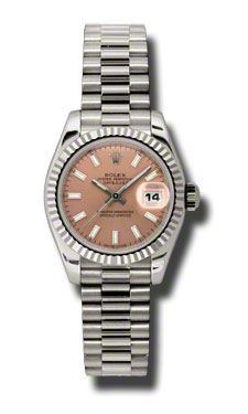 Model: 179179-PISJ - CASE = [Material:18kt White Gold], [Case Diameter:26], [Bezel:Fluted White Gold], [Case Back:Solid], [Water Resistant:100 Meters - 330 Feet], [Crystal:Sapphire], DIAL = [Color:Pink Index], MOVEMENT = [Type:Automatic Self Winding], [Crown:Screw Down], BAND = [Clasp:Concealed Crown], [Type:18kt White Gold Jubilee], (Usually ships in 1 to 2 weeks.)