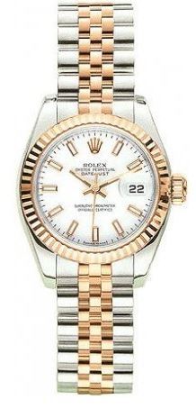 Model: 179171-WHSJ - CASE = [Material:Stainless Steel], [Case Diameter:26], [Bezel:Fluted 18kt Rose Gold], [Case Back:Solid], [Water Resistant:100 Meters - 330 Feet], [Crystal:Scratch Resistant Sapphire], DIAL = [Color:White Index], MOVEMENT = [Type:Automatic Self Winding], [Crown:Screw Down], BAND = [Clasp:Concealed Crown], [Type:Stainless Steel and 18kt Rose Gold], (Usually ships in 1 to 2 weeks.)