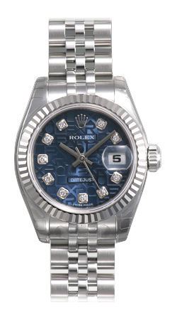 Model: 179174-BLJDJ - CASE = [Material:Stainless Steel], [Case Diameter:26], [Bezel:18kt White Gold], [Water Resistant:100 Meters - 330 Feet], [Crystal:Sapphire], DIAL = [Color:Blue Jubilee Diamond], MOVEMENT = [Type:Automatic Self Winding], BAND = [Clasp:Deployant], [Type:Stainless Steel Jubilee], (Usually ships in 1 to 2 weeks.)