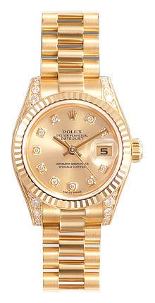Model: 179238-CHDJ - CASE = [Material:18kt Yellow Gold], [Case Diameter:26], [Bezel:Fixed Fluted], [Water Resistant:100 Meters - 330 Feet], [Crystal:Scratch Resistant Sapphire], DIAL = [Color:Champagne Diamond], MOVEMENT = [Type:Automatic Self Winding], BAND = [Type:18kt Yellow Gold Jubilee], (Usually ships in 1 to 2 weeks.)