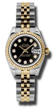 Model: 179173-BKDJ - CASE = [Material:Stainless Steel], [Case Diameter:26], [Bezel:Fixed Fluted], [Water Resistant:100 Meters - 330 Feet], [Crystal:Sapphire], DIAL = [Color:Black Diamond], MOVEMENT = [Type:31 Jewels Automatic Self Winding], BAND = [Clasp:Hidden Deployant], [Type:18kt Yellow Gold and Stainless Steel Jubilee], (Usually ships in 1 to 2 weeks.)
