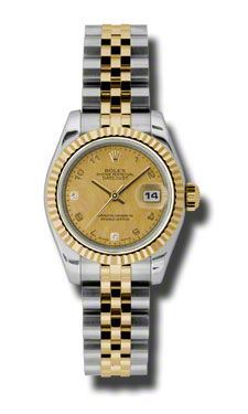 Model: 179173-CHGDMOPAJ - CASE = [Material:Stainless Steel], [Case Diameter:26], [Bezel:Fluted], [Case Back:Solid], [Water Resistant:100 Meters - 330 Feet], [Crystal:Scratch Resistant Sapphire], DIAL = [Color:Champagne Goldust Mother of Pearl Arabic], MOVEMENT = [Type:Automatic Self Winding], [Crown:Screw Down], BAND = [Clasp:Concealed Crown], [Type:18kt Yellow Gold and Stainless Steel Jubilee], (Usually ships in 1 to 2 business days.)