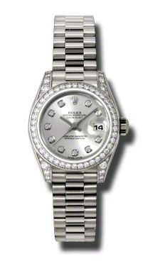 Model: 179159-SIDPR - CASE = [Material:18k White Gold Diamond], [Case Diameter:26], [Bezel:18k White Gold Diamond], [Case Back:Solid], [Water Resistant:100 Meters - 330 Feet], [Crystal:Sapphire], DIAL = [Color:Silver Diamond], MOVEMENT = [Type:Automatic Self Winding], [Crown:Screw Down], BAND = [Clasp:Concealed Crown], [Type:18k White Gold President], (Usually ships in 1 to 2 weeks.)